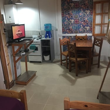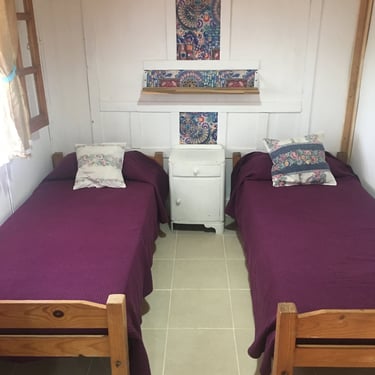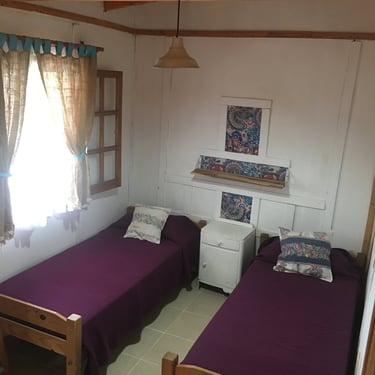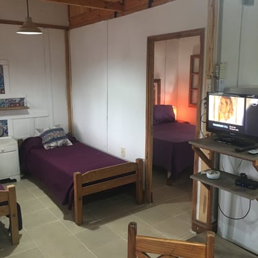 Disfruta de una acogedora cabaña de madera, ideal para hasta 4 personas. Este encantador refugio cuenta con una habitación privada equipada con una cómoda cama matrimonial, perfecta para descansar. El espacio común ofrece dos camas de una plaza, brindando comodidad adicional. La cabaña también dispone de un sector para cocinar, que incluye cocina, horno, heladera y calefón, facilitando la preparación de deliciosas comidas. Para tu entretenimiento, hay una televisión con DirecTV y aire acondicionado para mantener el ambiente agradable en cualquier época del año. Se incluye el blanco de cama, aunque ten en cuenta que las toallas no están disponibles. Ven y vive una experiencia única en esta hermosa cabaña.